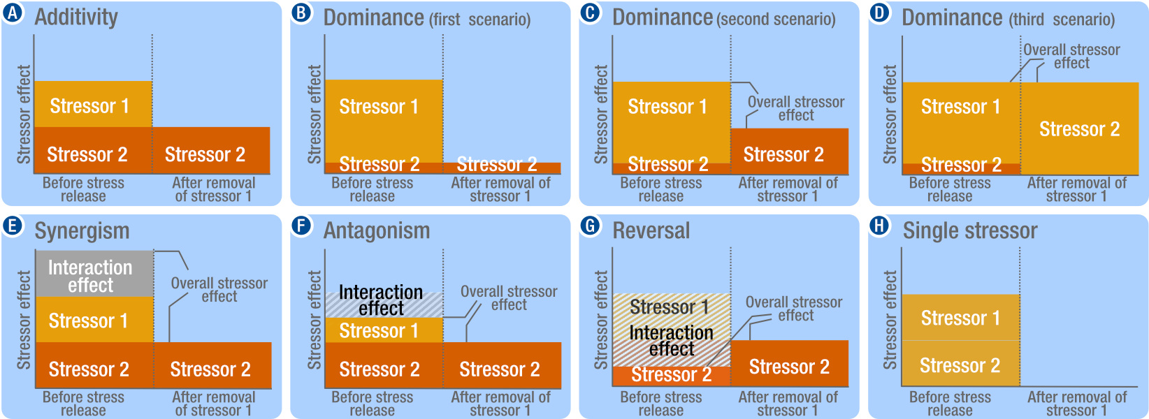 - Stressor dominance occurs when one of the stressors has an overriding effect on the considered response variable or if one stressor masks the effects of others